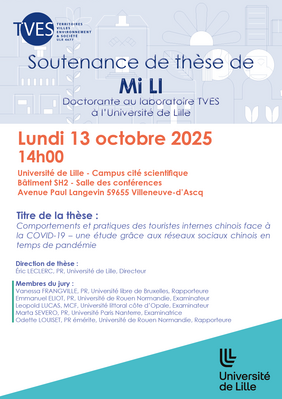 Soutenance de thèse de Mi LI, doctorante TVES à ULille